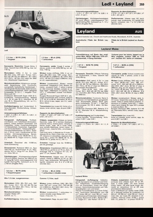 Freizeitfahrzeug auf Basis des englischen Mini, Motor 1000 oder 1275 cm3, Frontantrieb, 4-Gang-Getriebe.1.0/1.3 - 40/55 PS (DIN) 1 Vergaser