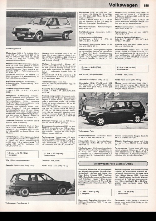 Kompakte Limousine mit quergestellten Vierzylindermotoren; Frontantrieb, Stufenheck, Aufbau auf Basis des Polo. Debüt Februar 1977. Frankfurt 1981: Detailänderungen an Karosserie und Interieur, neuer 1 Liter Motor, Ausstellungsvarianten C, CL und GL. Bezeichnung in einigen Ländern: Polo Classic.1-Liter - 40 PS (DIN) 1 Vergaser