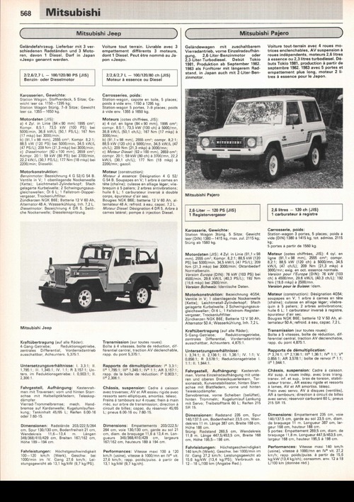 Geländewagen mit zuschaltbarem Vierradantrieb, vorne Einzelradaufhängung, 2,6-Liter-Benzinmotor oder 2,3-Liter-Turbodiesel. Debüt Tokio 1981, Produktion ab September 1982. 1983 als Fünftürer mit längerem Radstand, in Japan auch mit 2-Liter-Benzinmotor.2,6-Liter - 120 PS (JIS) 1 Registervergaser