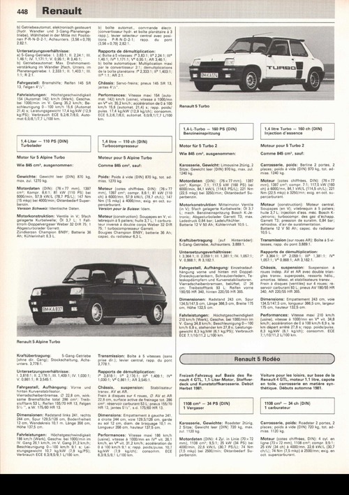 Freizeit-Fahrzeug auf Basis des Renault 4 GTL, 1,1-Liter-Motor, Stoffverdeck und Kunststoffkarosserie. Debüt Herbst 1981.1108 cm3 - 34 PS (DIN) 1 Vergaser