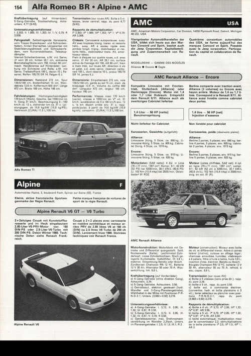Kompakte Limousine mit Frontantrieb, Stufenheck (Alliance) oder Heckklappe (Encore). Motor mit 1,4 oder 1,7 Liter Hubraum. Entspricht dem Renault 9/11. Alliance auch als zweitüriges Cabriolet lieferbar.1,4-Liter - 56 HP (netto) Benzineinspritzung