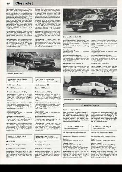 Sehr verbreitete Wagen in den USA. Mit 6 Zylinder und V8 Motoren lieferbar. 1984: Detailänderungen an Karosserien und Interieurs; erweiterte Modellreihe (Coupé). 1985 neuer 4,3-Liter-V6 als Basismotor. Dieselmotor 1986 nicht mehr lieferbar.4,3-Liter-V6 - 140 HP (netto) Zentraleinspritzung