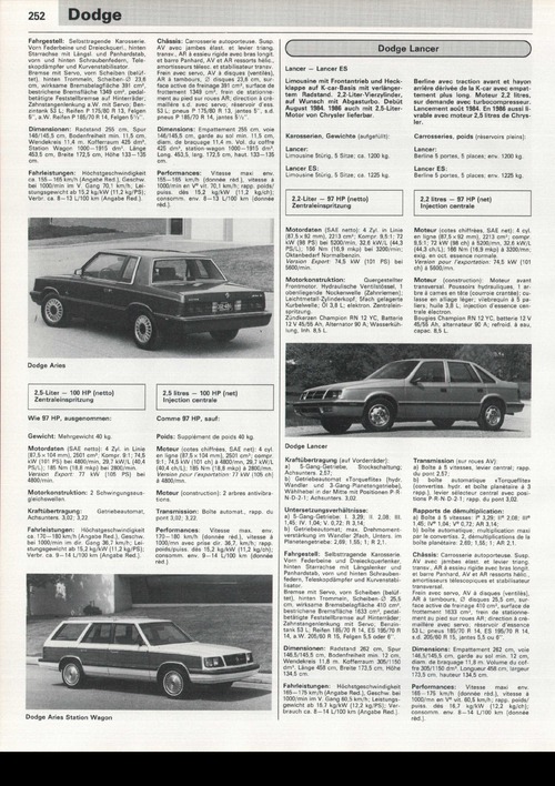 Limousine mit Frontantrieb und Heckklappe auf K car-Basis mit verlängertem Radstand. 2,2 Liter Vierzylinder, auf Wunsch mit Abgasturbo. Debüt August 1984. 1986 auch mit 2,5-Liter- Motor von Chrysler lieferbar.