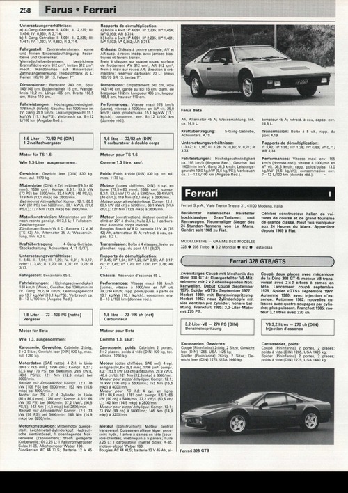 Zweisitziges Coupé mit Mechanik des Dino 308 GT 4: Quergestellter V8-Mittelmotor mit 2x2 obenliegenden Nokkenwellen. Debüt Coupé September 1975, Spider «GTS» September 1977. Herbst 1980: mit Benzineinspritzung. Herbst 1982: neue Zylinderköpfe mit vier Ventilen pro Zylinder; höhere Leistung. Frankfurt 1985: 3,2 Liter Motor mit 270 PS.3,2-Liter-V8 - 270 PS (DIN) Benzineinspritzung
