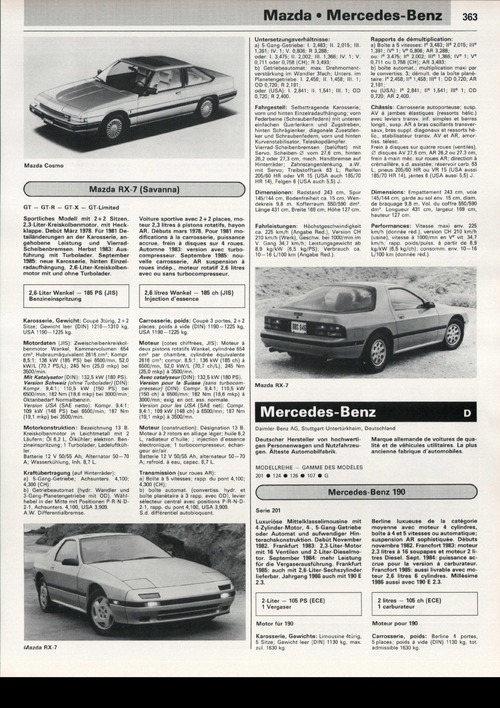 Sportliches Modell mit 2 + 2 Sitzen, 2,3 Liter Kreiskolbenmotor, mit Heckklappe. Debüt März 1978. Für 1981 Detailänderungen an der Karosserie, angehobene Leistung und Vierrad- Scheibenbremsen. Herbst 1983: Ausführung mit Turbolader. September 1985: neue Karosserie, hinten Einzelradaufhängung, 2,6 Liter Kreiskolben motor mit und ohne Turbolader.