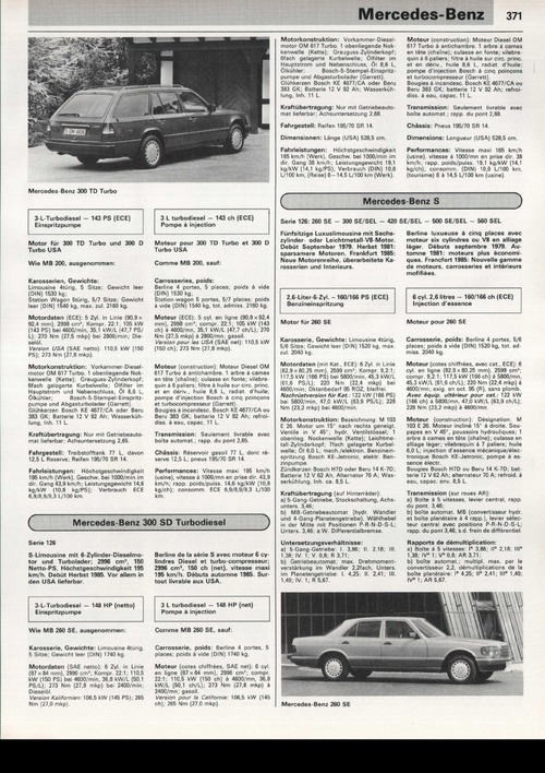 Limousine mit 6-Zylinder-Dieselmotor und Turbolader; 2996 cm\ 150 Netto-PS, Höchstgeschwindigkeit 195 km/h. Debüt Herbst 1985. Vor allem in den USA lieferbar.3-L-Turbodiesel - 148 HP (netto) Einspritzpumpe