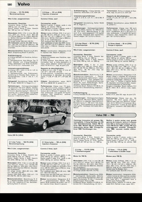 Viertürige Limousine mit grosser Mo torenpalette, 4 Gang Getriebe mit OD oder Getriebeautomat. Debüt 760 Februar 1982, Modell 740 mit einfacherer Ausrüstung Januar 1984. Chicago/Februar 1985: Kombiwagen neu.