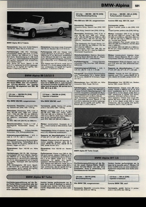 Hochleistungslimousine auf der Basis des Dreier-BMW, aber mit modifizierten 3,5-Liter-Motoren der grossen Baureihen. B6 abgeleitet vom 325i, B6 S vom M3.3,5-Liter - 240/254 PS (DIN) Benzineinspritzung