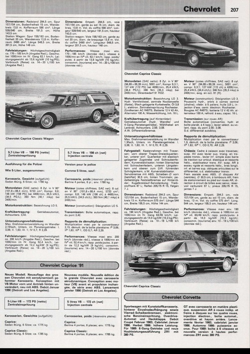 Neues Modell. Neuauflage des grossen Chevrolet mit aerodynamisch geformter Karosserie. Konzeption mit V8 -Motor vorn und Antrieb hinten unverändert, neu mit ABS. Debüt Januar 1990 (Detroit und Los Angeles).