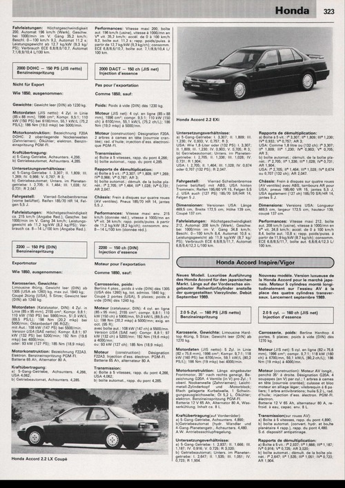 Neues Modell. Luxuriöse Ausführung des Honda Accord für den japanischen Markt. Längs auf der Vorderachse eingebauter Reihenfünfzylinder anstelle der quergestellten Vierzylinder. Debüt September 1989.