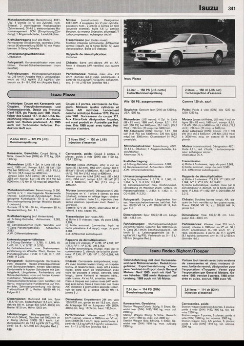 Sportliches Coupé mit 1,6-Liter-Motoren und Frontantrieb. Debüt 1989. Vorerst nur für die USA gebaut, wo es von GM als Geo Storm verkauft wird. Löst 1990 als Isuzu Impulse den Piazza ab; zusätzliche Version mit Turbolader und Allradantrieb. Im Verlauf des Jahres auch in Japan angeboten.