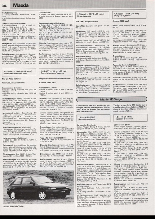 Kombiversion des 323, wird in der bisherigen Version weitergebaut. Herbst 1989: Auch im Export mit permanentem Vierradantrieb.