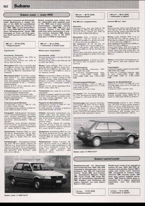 Kompakte Limousine mit Dreizylindermotor, Bezeichnung in einigen Ländern «J 10», 4WD mit zuschaltbarem Allradantrieb. Debüt als Prototyp Tokyo 1983. 1986 1,2-Liter-Dreiventilmotor. 1-Liter-FWD 1987 auch mit stufenlosem Getriebeautomat. Herbst 1988: Karosserie an Front und Heck geändert, ECVT auch für 1,2-Liter 4WD und Export.998 cm3 - 55 PS (DIN) 1 Doppelvergaser