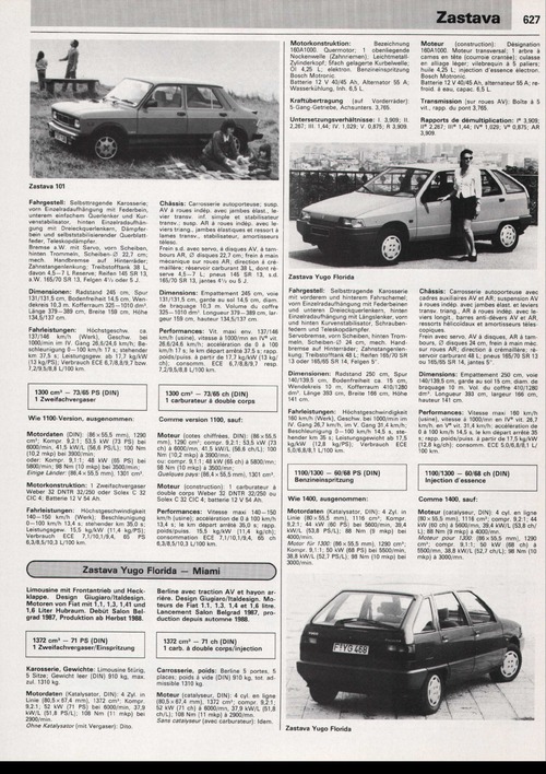 Limousine mit Frontantrieb und Heckklappe. Design Giugiaro/Italdesign. Motoren von Fiat mit 1,1, 1,3, 1,41 und 1,6 Liter Hubraum. Debüt Salon Belgrad 1987, Produktion ab Herbst 1988.1372 cm3 - 71 PS (DIN)1 Zweifachvergaser/Einspritzung