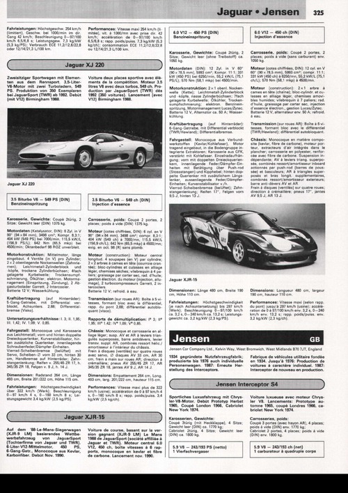 Zweisitziger Sportwagen mit Elementen aus dem Rennsport. 3,5-Liter-V6-Motor mit zwei Turboladern, 549 PS. Produktion von 350 Exemplaren bei JaguarSport (TWR) ab 1992. Debüt (mit V12) Birmingham 1988.