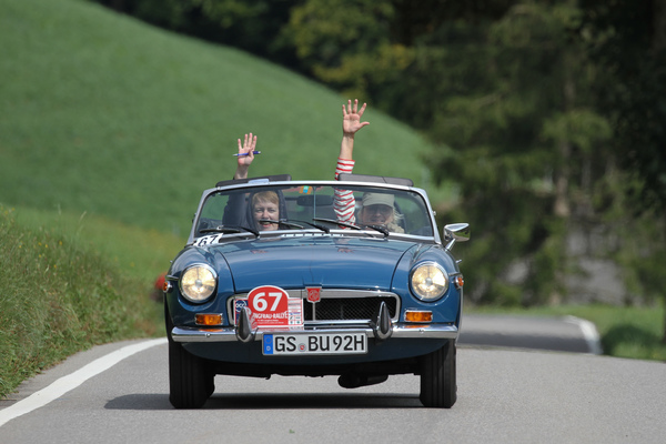 Zum Mittagshalt kehrten die Rallye-Teams am Freitag in Blumenstein ein. Von dort aus führte die Nachmittagsetappe Richtung Kanton Freiburg. Einer der Höhepunkte waren auf dem Weg dorthin zahlreiche Holzbrücken zwischen Rüti bei Riggisberg und Rüschegg. Ein weiterer Höhepunkt bildete der Abschluss der Freitags-Etappe: Die Route führte über den relativ unbekannten – und an dem Tag fast menschenleeren – Mittelbergpass zurück nach Saanen.