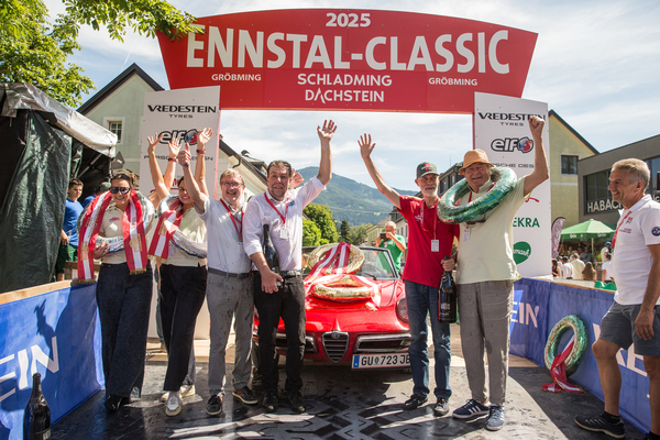 Erst bei den allerletzten zwei Kontrollstellen warfen die „Alfistisiters" Margarita und Magdalena Voglar ihre Leaderrolle der vorangangenen zwei Tage weg. Peter Schöggl und Werner Tripolt waren ihnen die ganze Zeit im knappen Windschatten gefolgt und schlugen im letzten Moment aus der Lauerstellung heraus zu. So gewannen sie die 33. Ennstal-Classik (16. bis 19. Juli 2025) sicher nicht ganz unerwartet und durchaus verdient.
