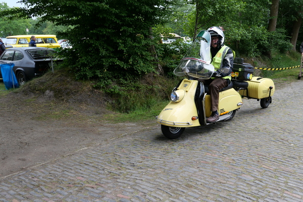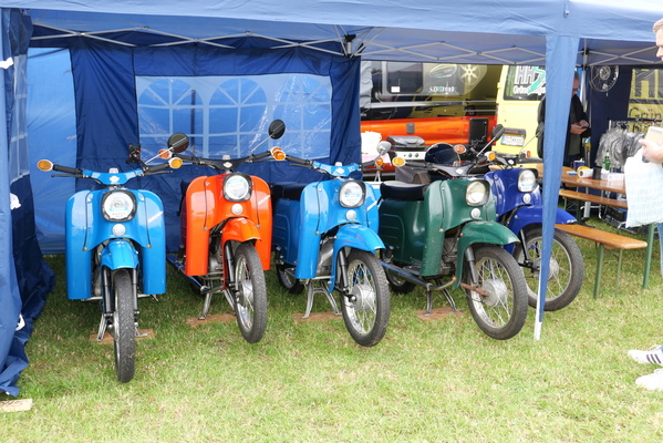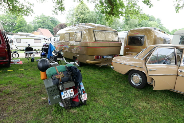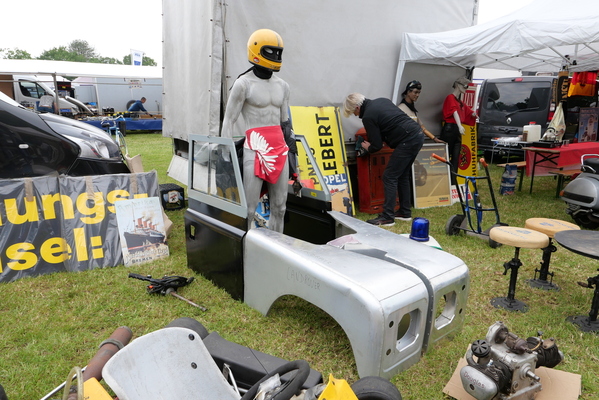 Zwischendurch wird man abgelenkt von kleinen und großen Kindern, die mit selbstgebauten Vehikeln über das Gelände knattern. Dann wieder lockt der Verkaufsplatz, wo ein scheckheftgepflegter Seat Marbella aus erster Hand mit nur 29'000 Kilometern für 5850 Euro angeboten wird. Oder ein restaurierter Land Rover Series 3 für 20'500 Euro. Oder eine aus Schweden importierte "Grosse Heckflosse", ein Mercedes-Benz 230 S für 23'650 Euro. Oder, oder, oder…