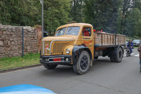 "Lebe glücklich – trinke Wein", steht da auf der Zisterne eines veritablen Tanklastzuges, der auf dem Chassis eines Willème LD 610 aufbaut. In Frankreich ist die charakteristische Kabine unter dem Übernamen "Nez de Réquin" ("Haufischschnauze") bekannt. Wein transportieren die beiden in Latzhosen gekleideten Routiers – im Übrigen versierte Kenner der französischen Lastwagengeschichte wie ein Gespräch mit ihnen zeigt – nicht, aber lustig zu und her geht es alleweil, wenn sie mit ihrem laut bollernden Sechszylinder-Saugdiesel von 13,5 Litern Hubraum und einer Leistung von 175 SAE-PS an der Menge vorbeifahren – schleichen.