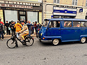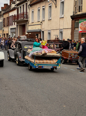 Rund 800 Autos, etwa zwei Dutzend "Poids Lourds" und unzählige Mobylettes von Motobécane und Vélomoteurs von Vélosolex quetschen sich dazwischen. Gut, gibt ein falscher Pfarrer dazu seinen Segen und blickt derweil den (männlichen) Nonnen hinterher, die auf dem Moped vorbeifahren. Irgendjemand hat die Plastikkuh ausgeladen und den Platz im Anhänger einer ausgelassenen Gruppe feiernder Menschen überlassen. Ein VW T1 transportiert den Nachwuchs auf dem Dachträger, und ein Traction Avant zieht einen Anhänger mit Matratze, auf der es sich zwei Damen gemütlich gemacht haben, während sie wie alle anderen Verkehrsteilnehmer im Schneckentempo durch die Stadt zuckeln.