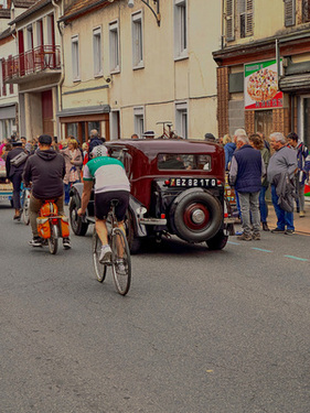 Die Hauptgasse von Lapalisse wird derweil von einer dichten Menschenmenge gesäumt. Die Tour de France wäre vermutlich froh, wenn sie noch so viele Leute auf die Strasse zu bewegen vermochte. Und diese Party ist kilometerlang. In jeder Ecke und Nische entdeckt man eine eigene kleine Inszenierung. Da sitzen Leute mit Campingstuhl und Picknicktisch am Strassenrand, und die beiden in Overalls gekleideten Damen der Art-Déco-Tankstelle sorgen für die Wiederherstellung der Marschbereitschaft des farbenfrohen Umzugs. Für die Velofahrer – natürlich stets am Überholen der stehenden Kolonne – gibt es zahlreiche Verpflegungsposten. Im Gegensatz zur Standardverköstigung nach Schweizer Prägung mit Wurst und Brot (im besten Fall in Begleitung von Kartoffelsalat) warten hier Choucroute Royale oder ein veritables Couscous auf die hungrigen Mäuler.