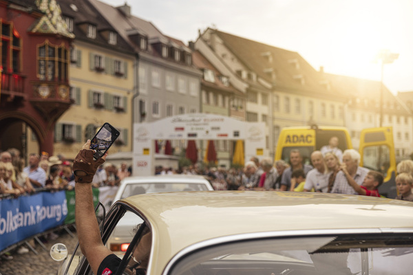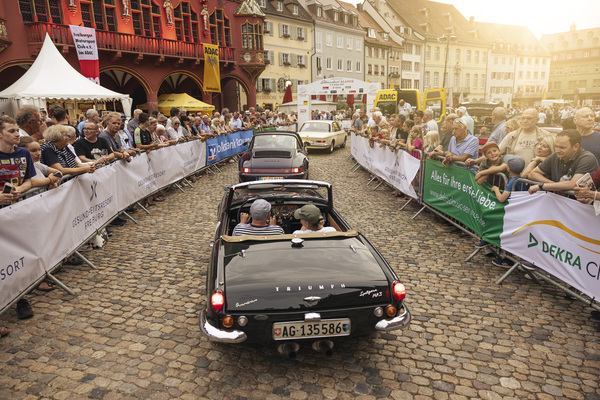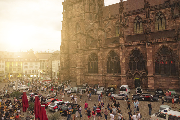 Nicht ganz 100 Teams – vorwiegend aus Deutschland und der Schweiz, ergänzt mit Equipen aus Frankreich und Luxemburg – nahmen am Freitagmittag die erste von insgesamt zwei Etappen unter die Räder. Gleich der erste Streckenabschnitt führte von Freiburg zuerst über das piece de résistance, nämlich den Schauinsland. Weiter ging's, meist über Nebenstrassen und Güterstrassen durch die malerische Landschaft des Schwarzwaldes zum Wiedener Eck, über Nöggenschwil zurück nach Freiburg. Zieleinlauf war der Münsterplatz, proppenvoll mit unzähligen Zuschauern: Es herrschte richtiges "Italien-Feeling", dort kennt man solche Zuschauermassen bei Oldtimer-Veranstaltungen. Abschrankungen sorgten dafür, dass sich die Autos der Teilnehmer den Weg nicht durch die Menschmasse suchen mussten.