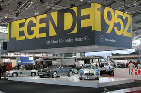 Mercedes fokussierte seine Präsenz auf das 60-Jahre-Jubiläum des “SL” und zeigte wie in Essen auch eine Art "Mobile", das die Ersatzteilkompetenz der Mercedes-Klassik-Abteilung illustriert.