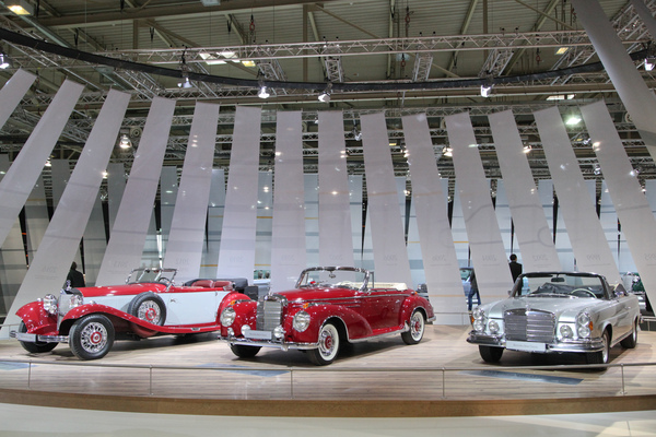 Mercedes-Benz stellte luxuriöse Cabriolets, aber auch die Sportwagen der Marke und die günstigeren, respektive besonderen offenen Wagen der Firmengeschichte ins Zentrum.