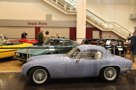 Fast jeder kennt den Jaguar XK 120, aber die Version mit Mistral-Kunststoff-Karosserie dürfte kaum jemanden ein Begriff gewesen sein. Zwar mag der dunkelgrüne Roadster, den man auf dem Lukas-Hüni-Stand betrachten konnte, nicht alle ästhetischen Kriterien erfüllt haben, im Rennsport war er aber durchaus konkurrenzfähig und er behielt seine Gestalt bis heute.