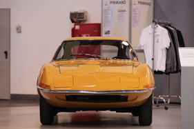 Zwischen roten Autos aus Maranello konnte man bei einem Händler einen komplett restaurierten silbernen Toyota Sports 800 entdecken. Dieser Sportwagen wurde nie offiziell in die hiesigen Breitengrade importiert, entsprechend selten ist er geblieben.