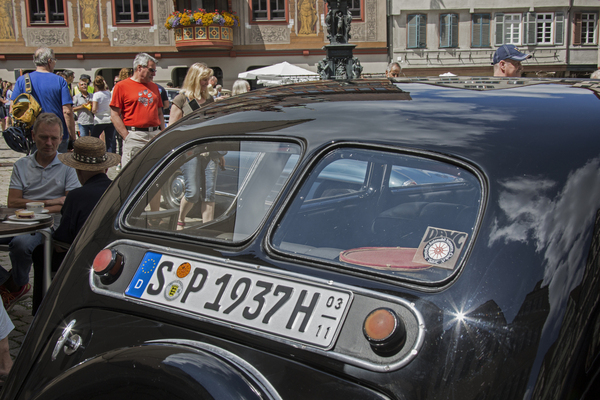 Kurz nach 11:00 Uhr ging's dann ab in die Tübinger Altstadt, wo die Fahrzeuge gemäß der Planung aufgestellt wurden – bei den schmalen Gassen in Tübingen eine Geduldsübung. Um 12:30 Uhr startete die Veranstaltung offiziell. Inzwischen hatte sich die Innenstadt zusehends gefüllt, was man hier sonntags so nicht gewohnt ist.