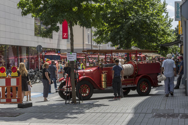 Die Oldtimer-Szene hat die Feuerwehren entdeckt. Der frühere Kreisbrandmeister Hermann ist als Liebhaber "alter Schätzchen der Feuerwehr" bekannt. Er sorgte dafür, dass verschiedene Ortsfeuerwehren ihre Oldtimer geputzt haben und in Tübingen präsentierten. "Den alten Feuerwehrautos sieht man noch an, dass sie Feuerwehrfahrzeuge sind. Heute erkennt man sie oft nur an der entsprechenden Lackierung.", dozierte er. Entsprechend begeistert waren die Kinder. Ein Dutzend Fahrzeuge aus den Jahren 1920 bis 1970 war zu sehen. Die Drehleiter fand besondere Beachtung, auch wenn sie nicht bestiegen werden durfte.