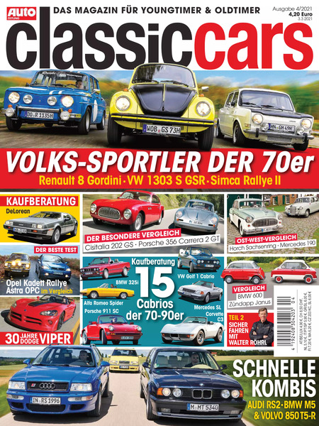 Volks-Sportler der Siebziger, Kaufberatung DeLorean, der besondere Vergleich zwischen Cisitalia 202 GS und Porsche 356 Carrera 2 GT, Kaufberatung 15 Cabrios der Siebziger- bis Neunzigerjahre, Audi RS2 gegen BMW M5 und Volvo 850 T5, 30 Jahre Doge Viper und mehr...