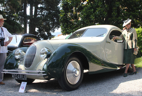 An diese Synergie haben uns einige Szenen des diesjährigen Concorso d’Eleganza Villa d’Este erinnert und wir sind im Archiv denn auch gleich fündig geworden und haben ein Bild aus Brüssel von 1946 ausgegraben, das einen Talbot-Lago mit Dame auf einem "Car and Fashion Display" zeigt, das so herrlich zum diesjährigen Bild eines Talbot-Lago T23 Coupé Royal Figoni & Falaschi passt, neben dem sich eine bereits gereifte Lady über Stunden drapierte. Wunderbar!
