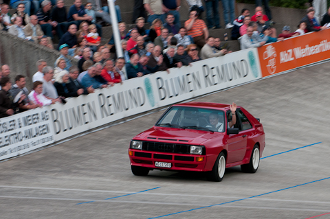 Prominenz trifft man überall, im Rennbahn-Stübli, zwischen den parkierten Oldtimern oder beim Bratwurststand. Auch für jüngere Besucher war dieses Jahr ein ganz besonderer Gast zu Besuch: Marcel Fässler, der erste Schweizer Gesamtsieger vom 24 Stunden Rennen in Le Mans, war ebenfalls vor Ort, verteilte Autogrammkarten, beantwortete Fragen und drehte schliesslich zweimal ein paar Runden in einem Audi Quattro aus dem Jahre 1985 (Urquattro):