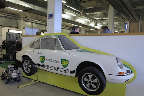 Oder doch halbe Sachen? Jedenfalls fiel mir bei meinem Besuch am beliebten Oldtimer- und Teilemarkt in der Kartbahn Roggwil (bei Langenthal/BE) am 22. Februar 2014 sofort der berühmte Porsche 911 R auf, mit dem 1967 die vier Schweizer Rennfahrer Jo Siffert, Dieter Spörry, Rico Steinemann und Charles Vögele in Monza eine ganze Reihe von Geschwindigkeitsrekorde für BP Schweiz errungen hatten.
