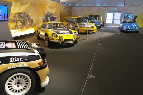 Motorsports-Fans können die folgenden Autos bewundern: die Alpine A110 Gr. 4, den Formel 1 Lotus-Renault 95T aus dem Jahre 1984, den Renault 5 Maxi Turbo Diac von 1985 und den Renault Clio Williams aus dem Jahre 1991.