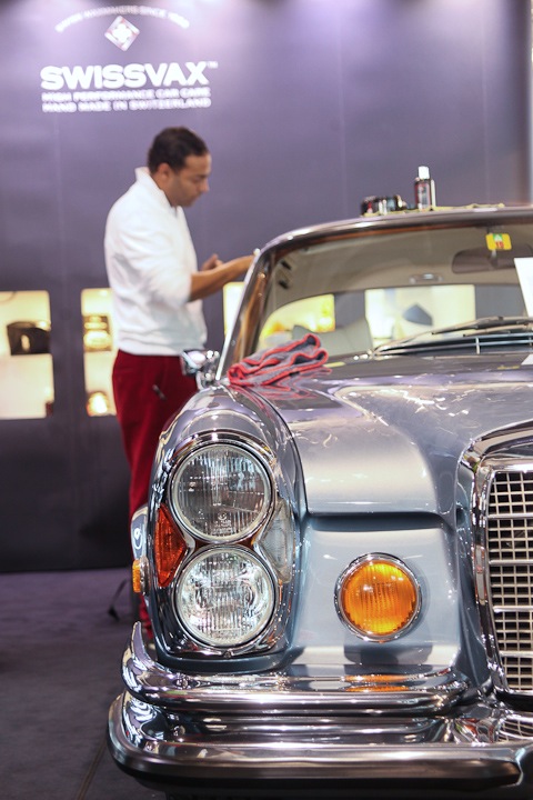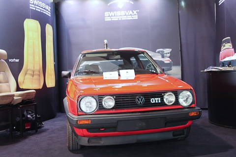 Sympathisch auf dem Swissvax-Stand war, dass anstelle eines der angesagten Superklassikers auch einmal ein VW Golf II glänzen durfte.