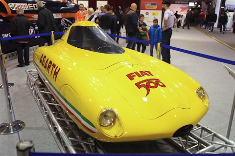 Interessant waren natürlich die Weltrekordfahrzeuge. Neben dem aktuellen Bloodhound SSC, der über 1600 km/h erreichen soll, wurde der geradezu miniaturhafte Fiat-Abarth 500 Record Pinin Farina von 1958 gezeigt.