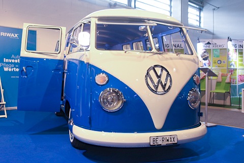 Ein immer wieder beliebter Oldtimer ist natürlich auch der VW Bus (T1), wie ihn ein weiterer Pflegemittelanbieter in den “richtigen” Farben präsentierte.