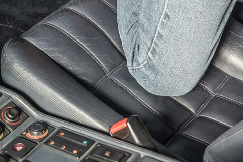 Eine andere Gefahr für die Polster ist das Abstützen mit nur einem Knie, um auf dem Rücksitz oder dem Beifahrersitz etwas zu richten oder zu holen. Mit dem Knie wirkt ein ganz gezielter, kleiner Druckpunkt auf die Sitzfläche und strapaziert damit all die Nähte um ein x-faches stärker als der grossflächig, gleichmässig verteilte Druck vom Hintern. Die dadurch entstehende grosse Spannung bringt vor allem ältere Nähte zum Reissen. Nähte die noch lange Zeit einem gleichmässigem Druck standgehalten hätten, können mit nur einem Kniedruck von 50, 60 Kilo auf wenige Quadratzentimeter sehr schnell reissen.