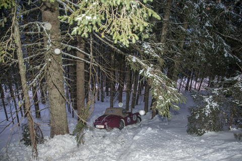 Da stellt sich natürlich sofort wieder die Frage, ob man mit derartigen Autos überhaupt an Winterrallies teilnehmen sollte? Vergessen wir jetzt einfach mal den Rost infolge der grossen Salzmengen, die auf diesen Kilometern unters Blechkleid und auch in die Mechanik gelangen. Reden wir einzig von möglichen Unfällen und deren Folgen. Der XK140 rutschte nur langsam den Abhang hinunter und wurde dann durch einen Baum auf seiner Schlittenfahrt ins Tal gestoppt. Der Stoss hat bestimmt einiges an Blech verformt und vielleicht wurden dadurch auch ein paar Spaltmasse etwas verschoben. Der Vorteil von Winterrallies aber ist, dass meist viel langsamer gefahren wird und der Schnee oft auch als Dämpfer seine Wirkung zeigt.