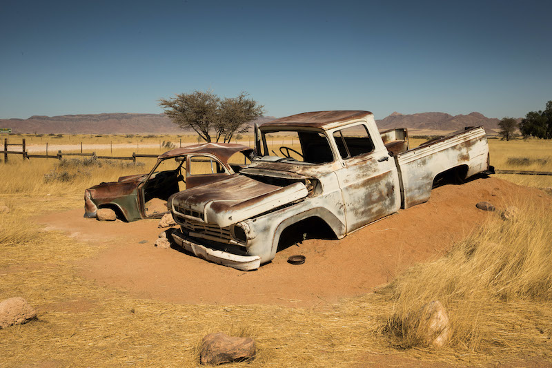 Alle grösseren Verschiebungen werden in Namibia noch mit Verbrennern bewältigt. Man kann schon froh sein mit einer Füllung von Tankstelle zu Tankstelle zu gelangen, da denkt man nicht mal an Elektro-Zapfsäulen.