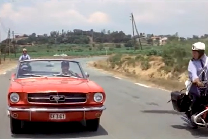 Obwohl Sean Connery nicht selbst gefahren ist, gehört das heute verschollene, Wimbledon-weisse Cabriolet aus "Goldfinger" zu den populärsten Ford Mustang im Film. Gemeinhin gilt die Verfolgungsfahrt durch die Schweizer Alpen, die mit einem aufgeschlitzten Reifen und einer zerfetzten Karosserieflanke endet, sogar als erster grosser Leinwand-Auftritt des sportlichen Kompakten überhaupt. Das ist zwar nicht ganz falsch – aber strenggenommen auch nicht ganz richtig. Selbst wenn heute kein Hahn mehr danach kräht: ausgerechnet eine harmlose französische Komödie mit kleinem Budget kam der englischen Multimillionenproduktion um eine gute Woche zuvor.