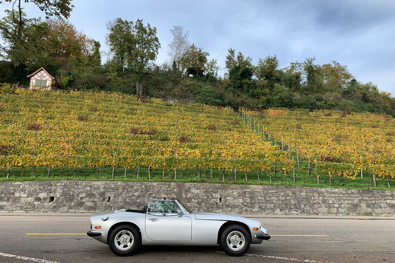Wenn es jeweils nochmals ein bisschen warm ist und die Blätter gelb von den Bäumen fallen, dann fahre ich den TVR besonders gerne. Und ich tue es jeweils auch immer mit etwas Wehmut, denn schliesslich geht das Jahr langsam zu Ende und über die kommenden Monate werden sich nur wenige Gelegenheit bieten, den offenen Wagen bei Trockenheit und salzfreien Strassen zu bewegen. Und offen ist er eigentlich immer, sogar das Faltdach bleibt zuhause. Die Fahrstrecke, in der dieser 3000 S in meinem Besitz mit Dach oben gefahren ist, dürfte kaum zwei oder drei Prozente der gesamten Fahrstrecke betragen. Ist ja schliesslich ein Roadster, mit Steckscheiben. Mit Dach hat man weniger von Fahren und auch vom herrlichen Klang des V6-Motors. Und im Herbst nimmt man alles besonders intensiv auf, die Farben und die Gerüche.