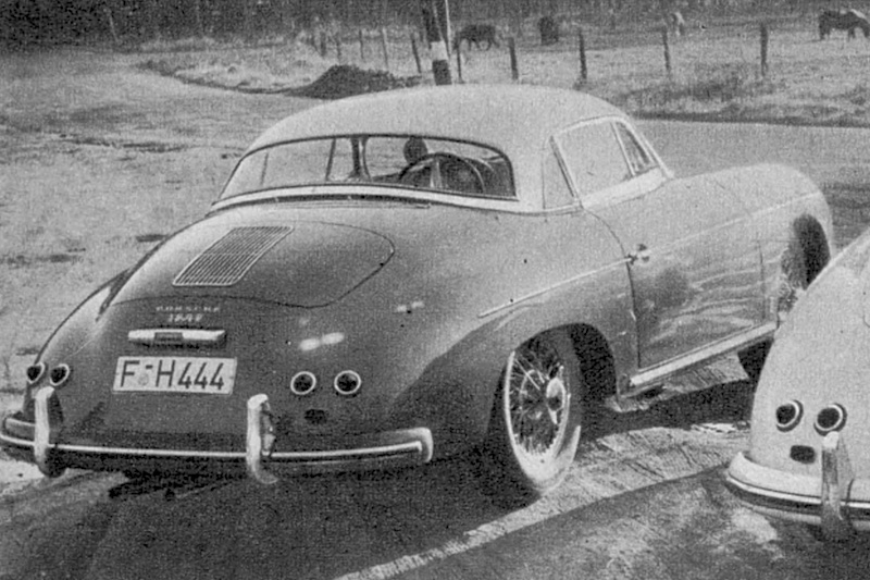 auf Porsche-356-Basis gebaut hat, war zwei Jahre später wieder für eine ungewöhnliche optische Modifikation gut. Denn neben einem amerikanischen Kunststoff-Hardtop schraubte er sich 1956 auch Drahtspeichenräder auf seinen 356 1600 Super Speedster als wäre es ein englischer Roadster.