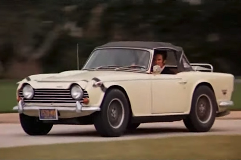 Selten war das Auto einer Hauptfigur in einem Film schneller zu sehen als in dieser schwarzen Komödie von 1972. Bereits in der ersten Sekunde – noch vor dem Vorspann – braust der Triumph TR 250 in sonnigem "Jasmine Yellow" auf seinen Cosmic-Leichtmetallrädern ins Bild, hält an – und bekommt prompt eine Busse für Parkieren im Halteverbot. Damit sind die Rollen klar verteilt.