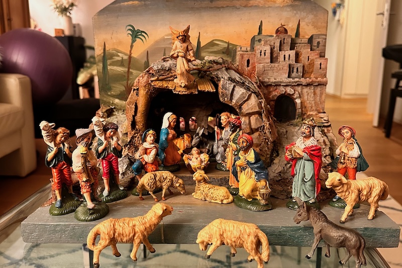 Vor einiger Zeit bin ich von meiner Patin – sie ist im Alter von 99 Jahren gestorben – mit einer italienischen Weihnachtskrippe der 1950er-Jahre beerbt worden. Darin enthalten sind einige Figuren, solche aus Holz, aber auch solche aus einer Art Plastik. Vielleicht ist es dieselbe Masse auf Basis von Leinöl, aus der einst Linoleumböden oder die historischen Figuren von – kein Zufall, der ähnliche Name – "Lineol" hergestellt wurden. Vielleicht war es ein Zufall (oder Glück) oder der italienische Hersteller hat einst Millionen davon in aller Welt abgesetzt, doch ich fand einen kompletten Satz identischer Figuren als NOS – also "New Old Stock", alte Lagerware – in besagtem Laden. Die Verkäuferin bestätigte, dass sich diese Schachtel wohl schon seit Urzeiten im Fundus befinden müsse und ergänzte, dass sie sich gewundert habe, dass einer diese überhaupt gefunden habe. Die ehrliche Haut! Auf der Jagd nach Altertümern gehöre ich somit zu den seltsameren Kunden. Damit kann ich leben.