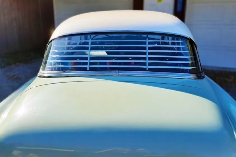 Für den DeSoto steht eine Heckjalousie (siehe das Titelbild) auf der Wunschliste, dieses metallene Teil wird zwischen oberem Heckscheibenrand und Hutablage geklemmt um die Sonneneinstrahlung zu mildern. Der Zweck wäre primär nicht das erhöhte Wohlbefinden der Passagiere, sondern der Schutz des Originalpolsters – besonders der hinteren Kante der Rückbank – vor UV-Einstrahlung.