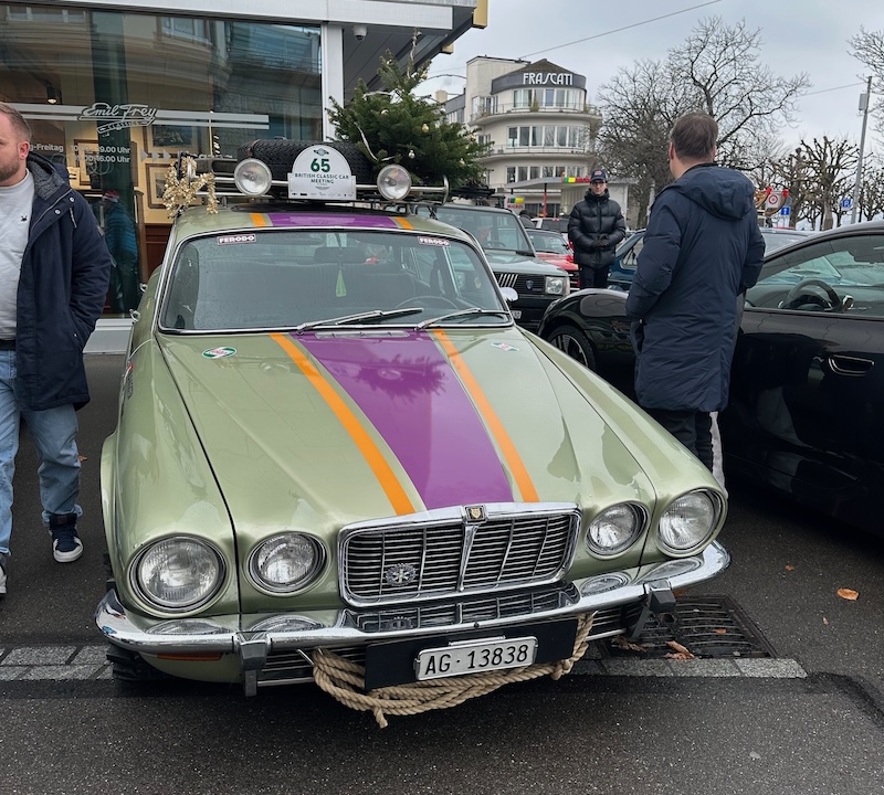 Für die Ewigkeit festgehalten, fuhren die dekorierten Wagen vor die Fotowand, liessen die Lichtelein blinken oder den Elch – pardon das Rentier – röhren oder die Schalmeien der Engelein erklingen, oder war es das eingebaute Läutwerk eines alten Amerikaners der 1960er-Jahre? Den Vogel abgeschossen hat Eugen Küng mit seinen beiden fanfarenblasenden Putten aus Pappmaché vor dem klassizistischen Kühler seines Rolls-Royce Silver Shadow. «Am Freitagabend bin ich keine fünfhundert Meter weit gekommen als mich zwei freundliche Uniformierte darauf aufmerksam gemacht haben, dass ich die beiden Engel wohl besser demontieren soll, sie fürchteten diese würden womöglich ihre Flügel ausbreiten und unverhofft davonflattern – so habe ich die Verwarnung jedenfalls interpretiert und sie darum für heute morgen mit Kabelbinder befestigt», lachte uns der gutsituierte Herr im Weihnachts-Anzug an.